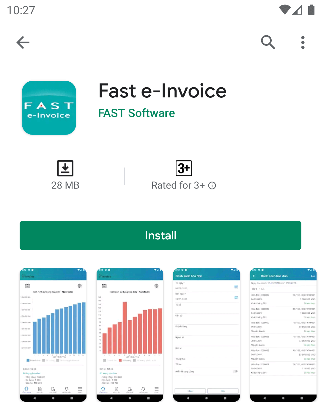 - Tap the "Install" button. You may be asked to allow permission for Fast e-Invoice to access various tools on your device. If you’re happy with these, tap "Accept". Once it has installed, tap the "Open" button on the Play Store page. Alternatively you can find it on one of your home screens or in your list of apps - launch it by tapping the app icon.